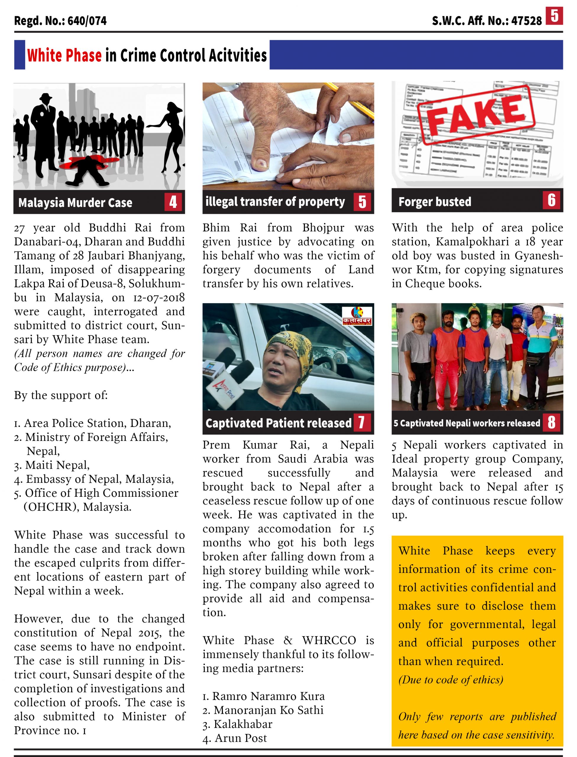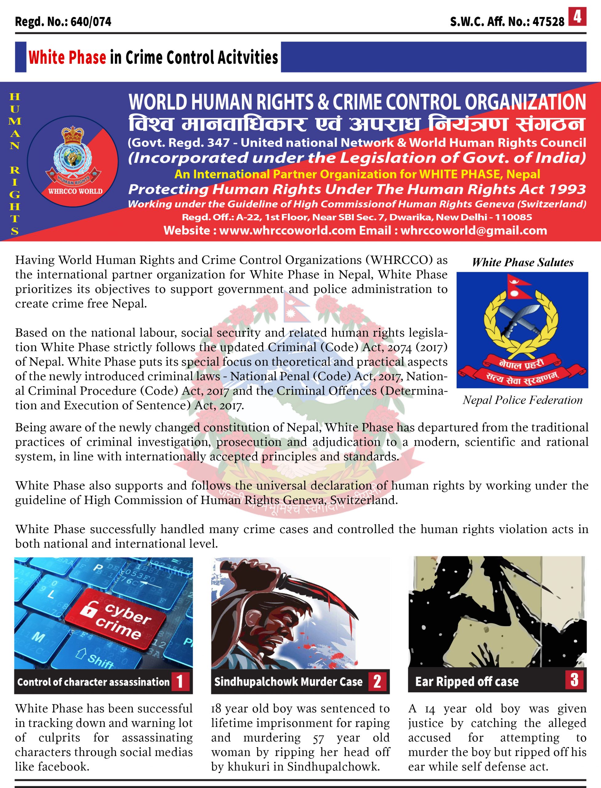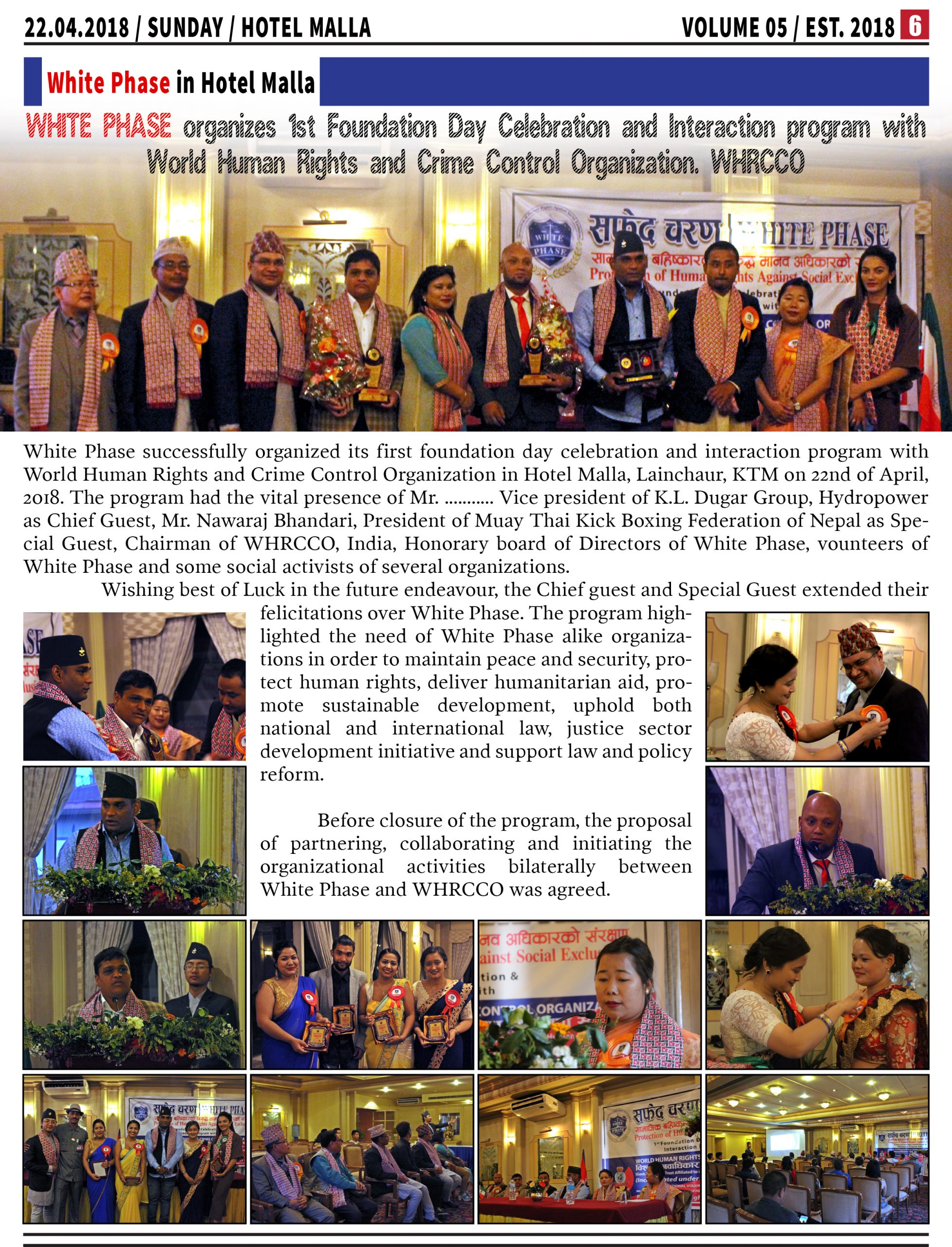 White Phase has been awarded as the Best organization in the protection of Human Rights for four years successively.